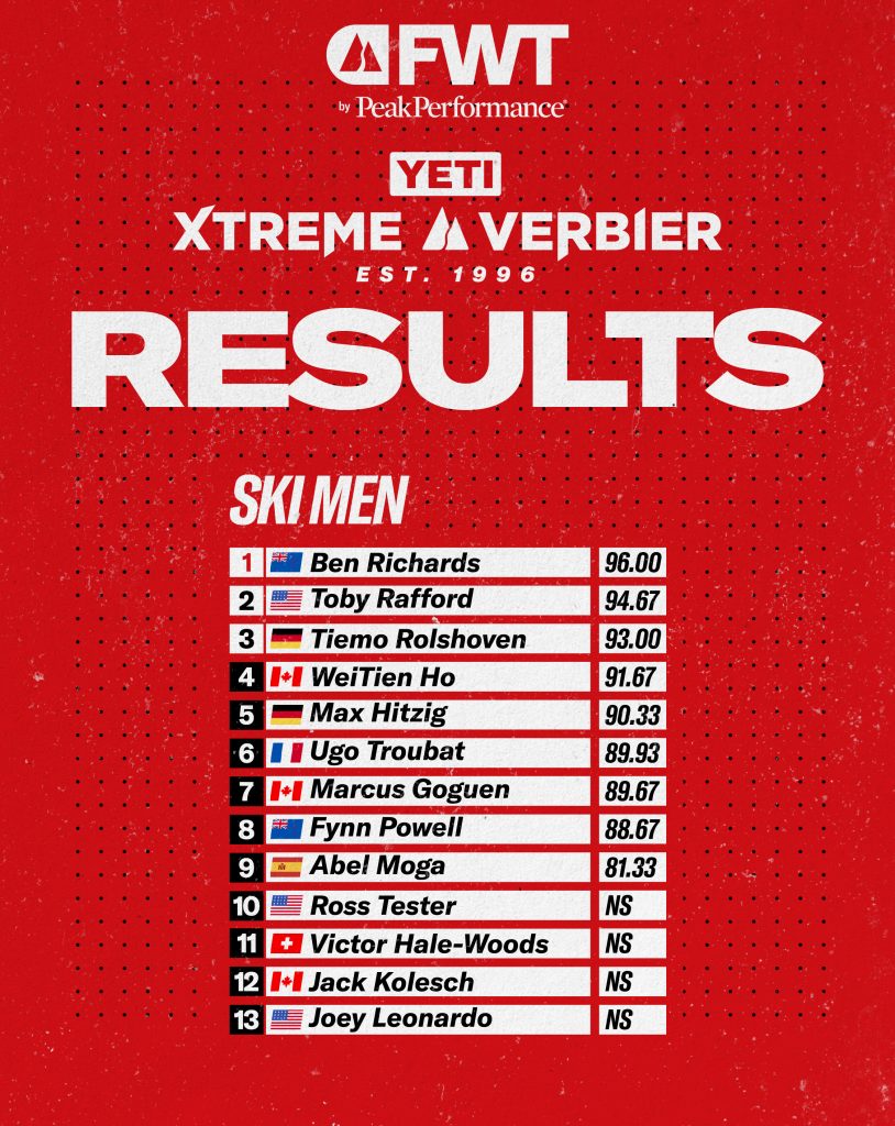 The 2026 FWT Yeti Xtreme Verbier went down this past Saturday on the legendary Bec des Rosses. This is the 30th anniversary of this comp with the first Verbier Xtreme taking place on The Bec in 1996. With 50 cm of fresh snow and cold weather, the stars aligned for pretty damn perfect conditions with the holy trinity of a steep, deep & stable venue for the finally of the 2026 FWT season.