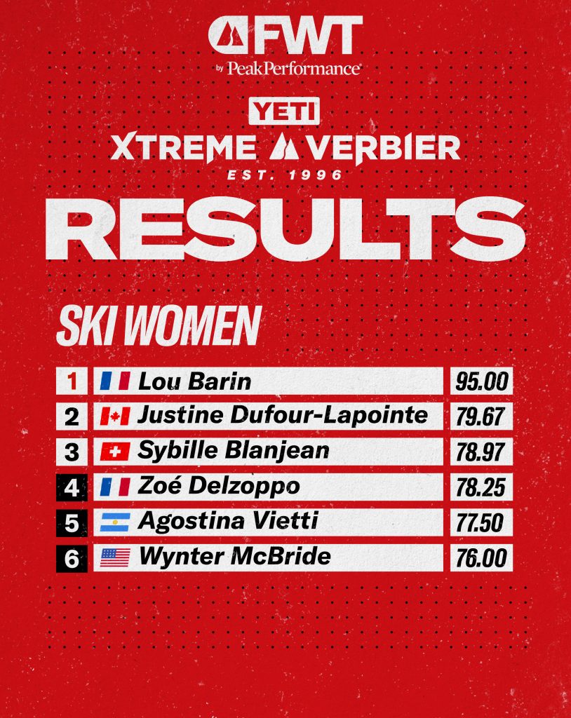“Just three years ago, I would never have felt capable of riding the Bec. Since Alaska, I’ve gained so much confidence. I still can’t quite process what just happened, it’s something I’ve always dreamed of. I’m truly happy to have shared this season with my brother.” — Lou Barin, 2026 YETI Xtreme Verbier Ski Women Winner and 2026 FWT Ski Women Champion